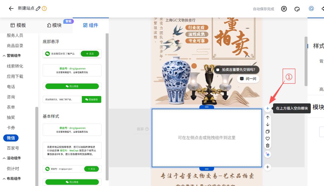 左边栏找到想要的组件,按住鼠标左键拖动放到页面想要的位置