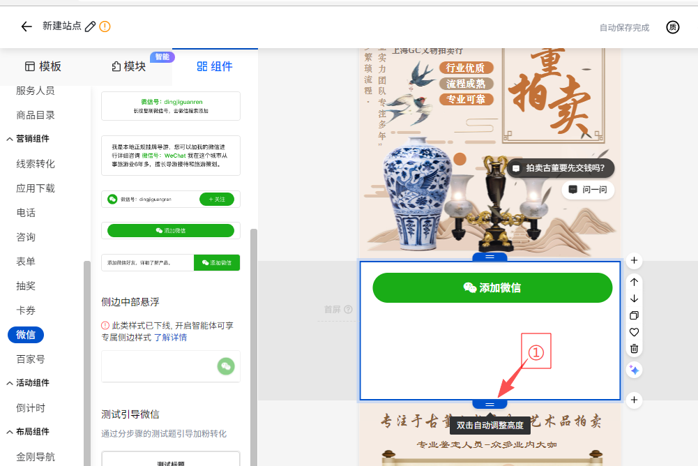 插入组件后,双击自动调整高度