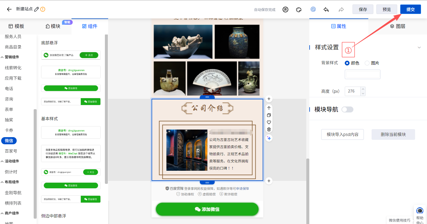 排版好页面后,点击提交