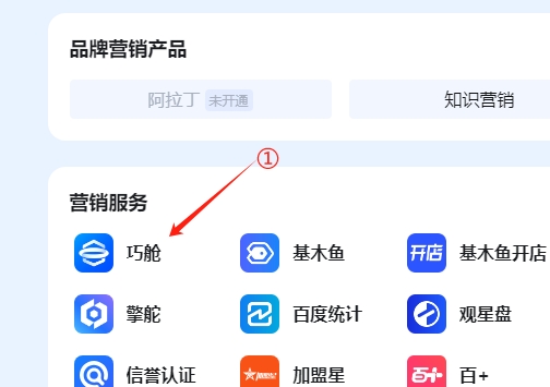 第一步、登录百度营销网页端后台,点击如下图①进入巧舱。